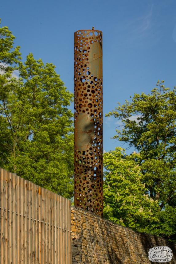 › víceTento masivní dřevěný prvek je umístěný v laguně pod ulicí Václava Havla, vedle AmFíku.