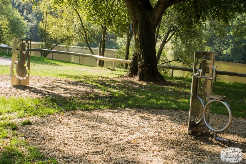 › víceSkvělá atrakce pro soutěživé typy. Dvě kola umístěná u řeky Ohře, jejichž šlapáním je poháněno čerpadlo a z výtokové trysky voda stříká přímo do řeky.