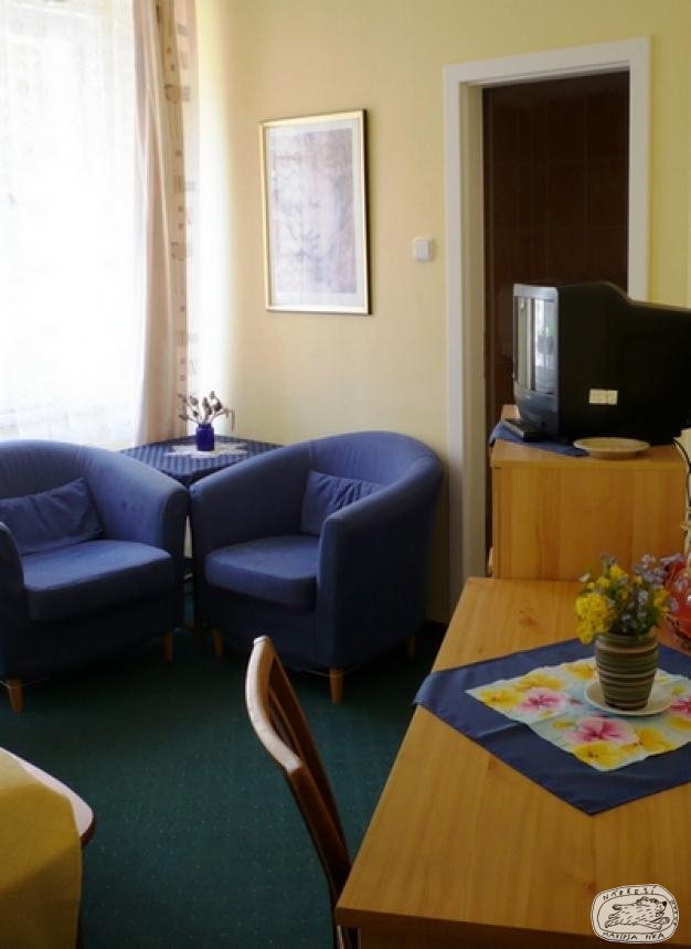 Celková kapacita penzionu je 29 lůžek - 7 apartmentů pro 2 až 6 osob a 4 pokoje Pokoje jsou vybaveny televizí se sat. příjmem, WI-FI signálem, minibarem a telefonem, apartmenty i kuchyňkou. Všechny pokoje mají vlastní sociální zařízení.