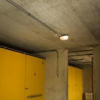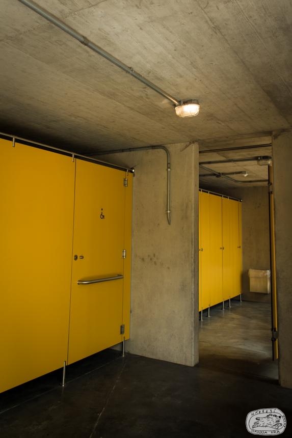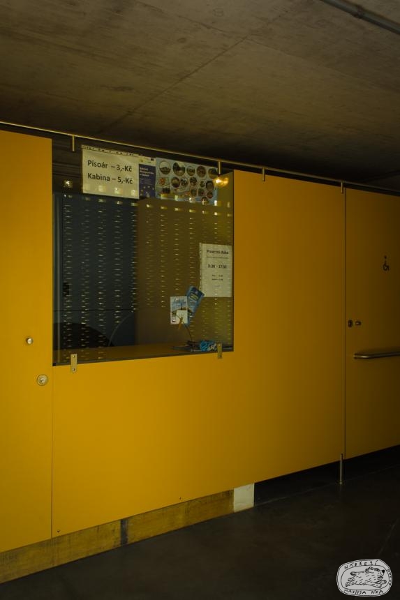 Objekt sociálního zařízení, nad nímž bylo vybudováno parkoviště, je řešeno z dřevěných prvků jako objekt pouze pro letní provoz.